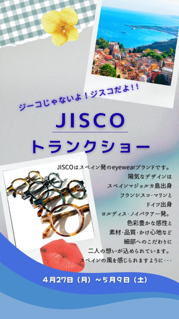 4月27日(月)~5月9日(土)めがね屋SANTAにてJISCOのトランクショーを開催いたします。